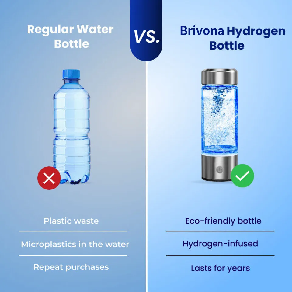 The Brivona Hydrogen Bottle delivers unique advantages over a standard reusable water bottle, offering enhanced hydration and added wellness benefits. Here’s how Brivona outperforms a regular water bottle across essential features to support an active, health-conscious lifestyle.