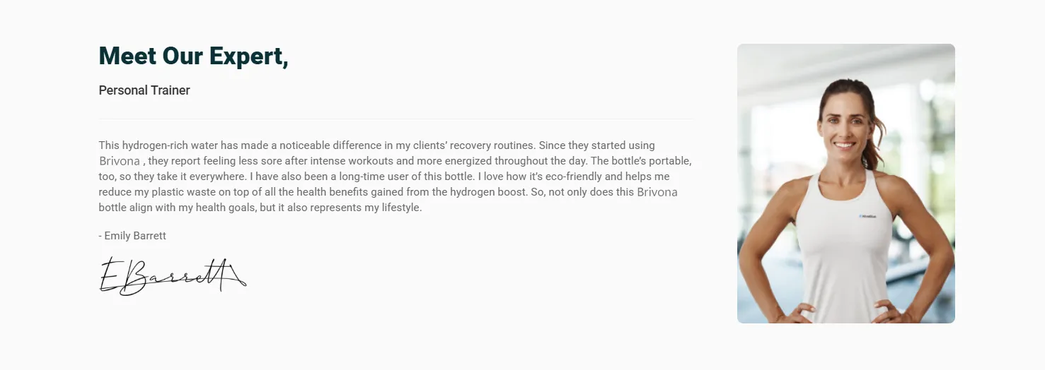 Using Brivona has been fantastic for me! I always felt sluggish after my workouts and struggled with hard recoveries but then my trainer recommended trying hydrogen water. Since I started drinking from this bottle I’ve noticed I’m way more energized throughout the day. My skin’s also looking clearer, and I feel more focused than ever. I love it!!