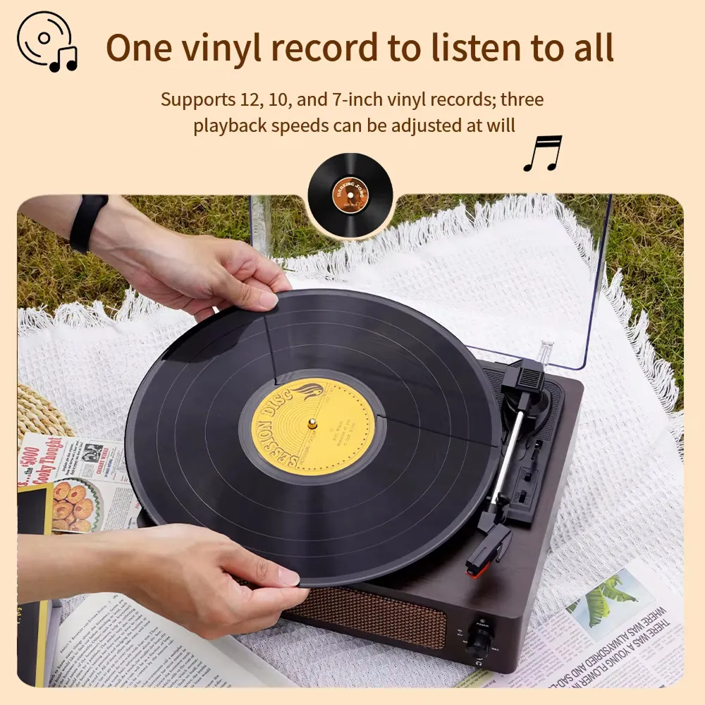 Indeed it does! The Brivona is designed to play 7, 10, and 12-inch records at all three standard speeds (33, 45, and 78 RPM), making it compatible with virtually any vinyl record in your collection, from vintage 78s to modern releases.